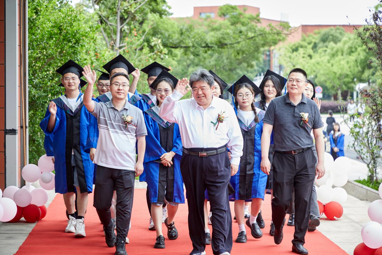 典礼开始前,长高院为师生们精心安排了红毯仪式,象征着毕业生们在长高院的“三年长跑”已圆满到达终点,祝福同学们带着成功的喜悦再赴美好前程;同时在科学城内设置了具有长高院和园区企业特色的签名打卡墙供师生留念,珍藏在海门的美好的回忆。