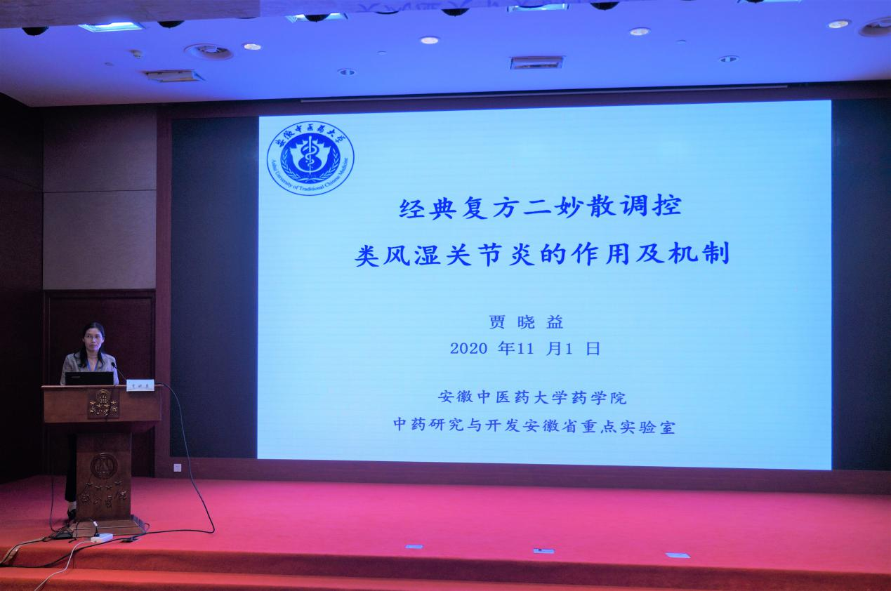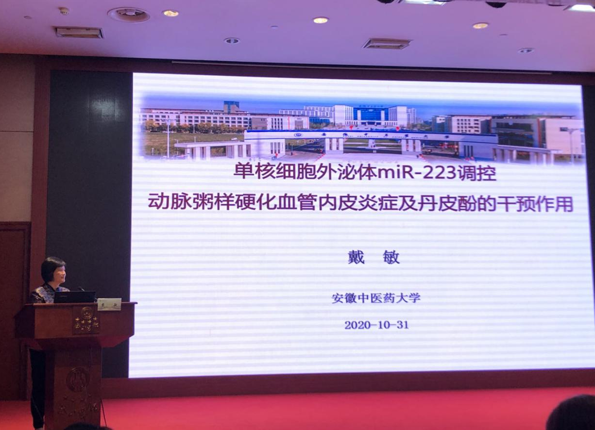 公司副董事长、中药研究与开发安徽省重点实验室主任戴敏教授做了题为“单核细胞外泌体miR-223调控动脉粥样硬化血管内皮炎症及丹皮酚的干预作用”大会报告,研究所学术骨干贾晓益教授、王艳副教授分别做了题为“经典复方二妙散调控类风湿关节炎的作用及机制”、“基于肠道微生物探讨通窍活血汤对脑缺血再灌注炎症损伤大鼠的保护作用”专题报告,展示了公司在中药研究上的积累与特色。