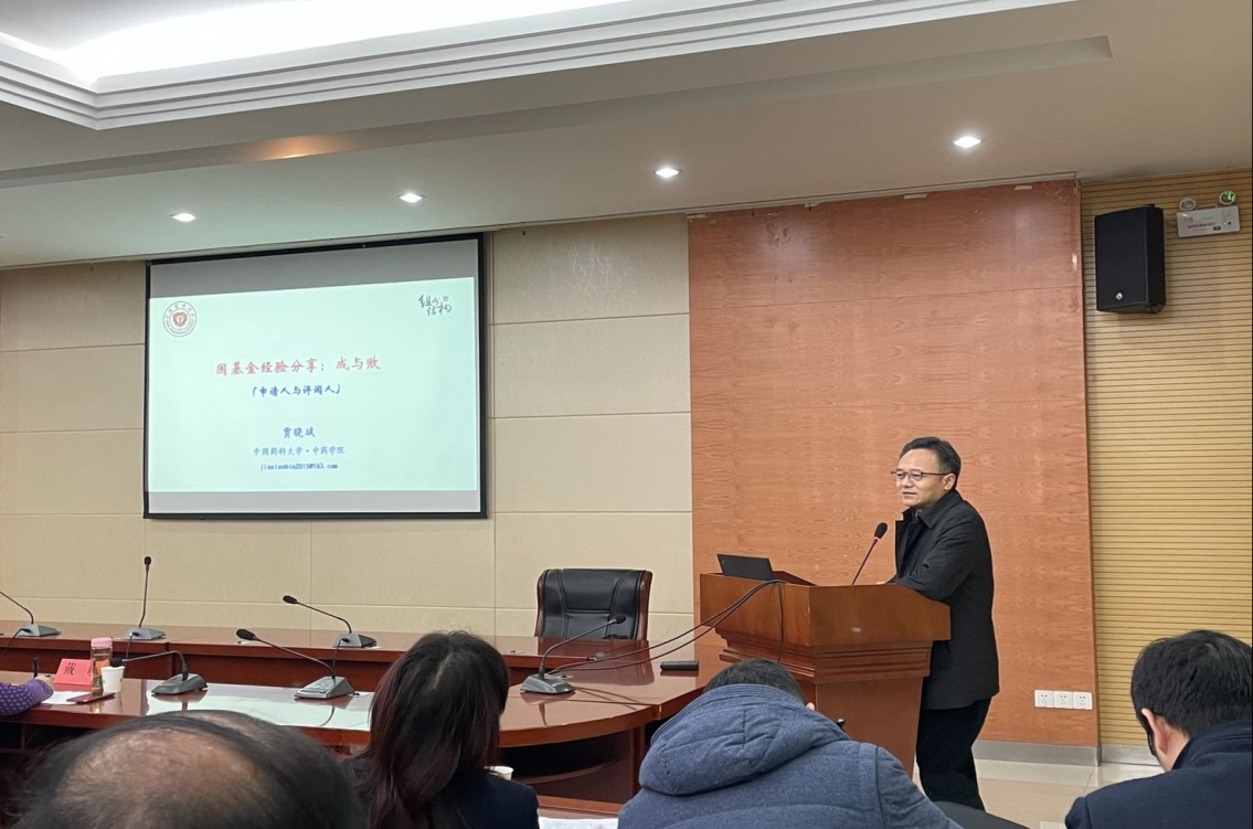 贾晓斌教授以“国基金经验分享:成与败”为题,从标书创新性、复杂问题简单化、思路交叉学科交叉、已做的与未做的、条理性逻辑性、同行预审与修改方面报告了国家自然科学基金申请过程中以申请人和评阅人的感受与体会,报告内容对于科研人员在国家自然科学基金申请过程中有重要的指导意义。