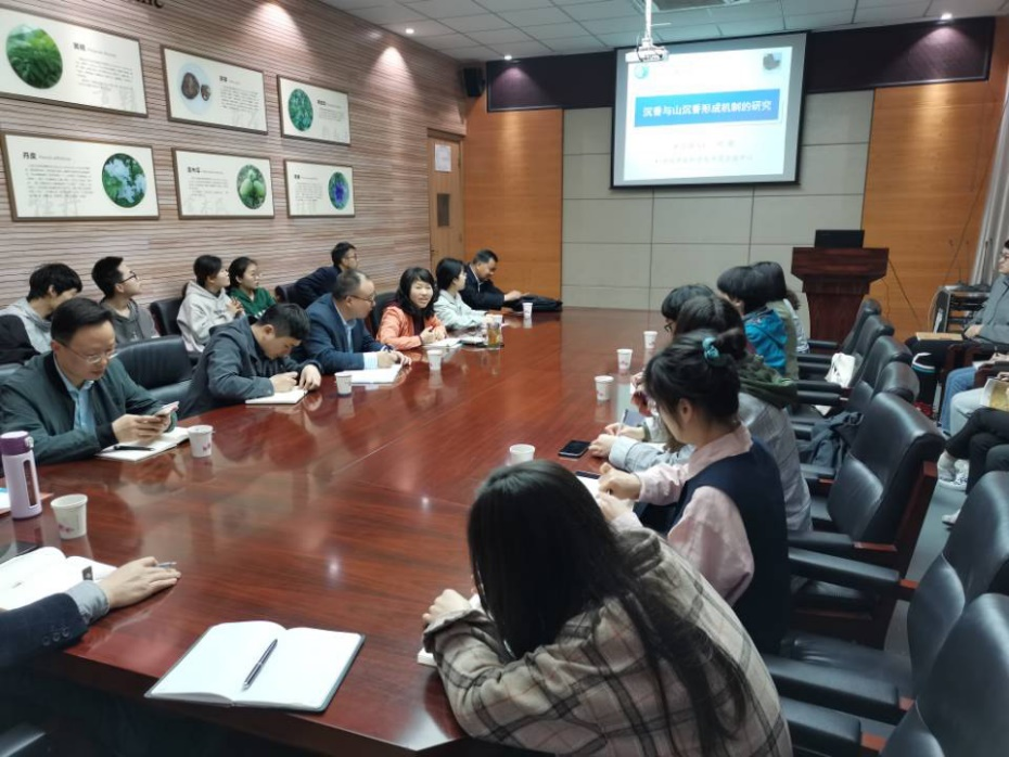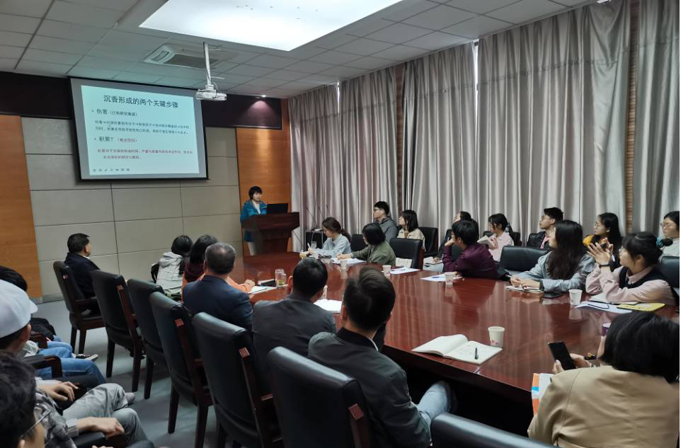 报告会上,刘娟副研究员围绕沉香的使用历史、沉香的形成机制、沉香形成的研究意义和沉香产业链条的关键核心步骤进行了介绍,同时结合多年在沉香与山沉香方面的研究工作,分别从白木香种质资源的调查研究、细胞组织培养应用于沉香挥发油提取、沉香与微生物的互作研究等方面进行了分析和报告,创新性开展了真菌与白木香植株互作研究,并取得了阶段性成果。在场师生就沉香细胞组织培养的应用等问题与刘娟副研究员进行了深入交流。