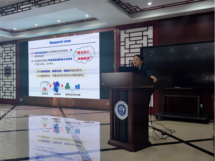 报告会上,陆小云研究员介绍了抗肿瘤药物临床耐药性的特点、克服肿瘤临床耐药的激酶抑制剂的发展历程和开发针对克服肿瘤临床耐药的激酶抑制剂的设计思路,结合其课题组研究成果重点阐述了克服肿瘤临床耐药的激酶抑制剂的靶标发现、先导化合物的确定、先导化合物的优化及多靶点抑制剂体内活性及代谢特点。为克服肿瘤临床耐药的激酶抑制剂研究提供了新的研究思路和方法。
