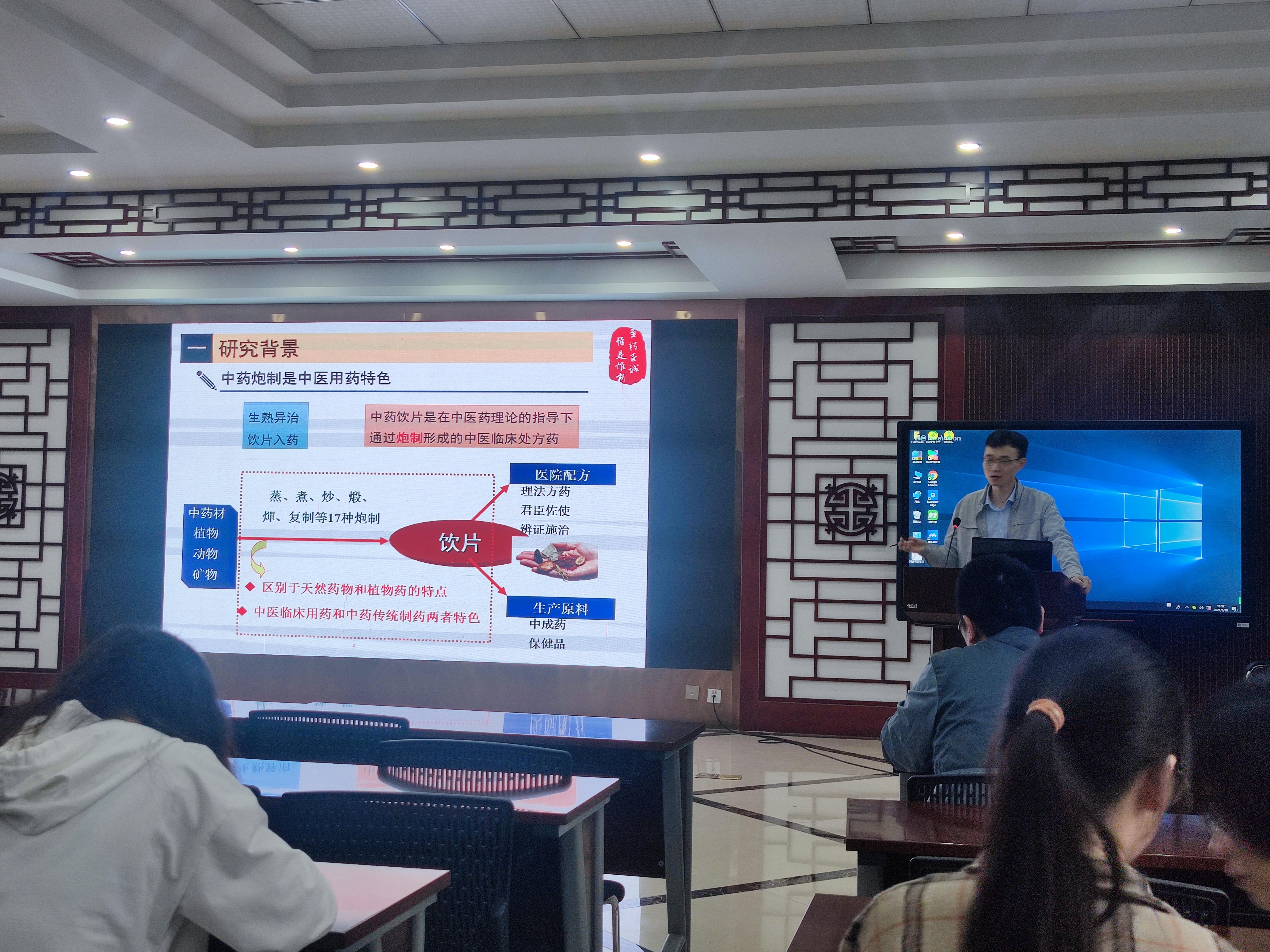 报告会上,谢冬梅介绍了特色技术传承与学习情况,通过积极传承中药传统技术,夯实理论基础,积极创新实践,并进行教学改革,以识辨药能力提升的教学效果。王国凯从民间马兰药效物质基础到结构复杂多样柠檬苦素定向挖掘,建立了马兰有效部位的质量评价,并进行了有效部位活性的研究。欧金梅主讲药用梅的驯化起源研究,向大家介绍了药食同源的梅的资源分布,药用梅的驯化起源和品种选育,药用梅野生群体的遗传多样性,药用梅的质量评价等。推测出乌梅主产区四川为野生群体的起源和多样性中心;药用梅栽培品种的近缘野生种和驯化历史,印证了绿萼梅为安徽道地药材。黄琪以黄芩炒炭“止血存性”炮制科学内涵研究为题,通过对比黄芩炒炭前后药效的不同变化,黄芩化学成分的研究,生黄芩、黄芩炭指纹图谱研究等,阐述了黄芩炒炭“止血存性”炮制科学内涵。