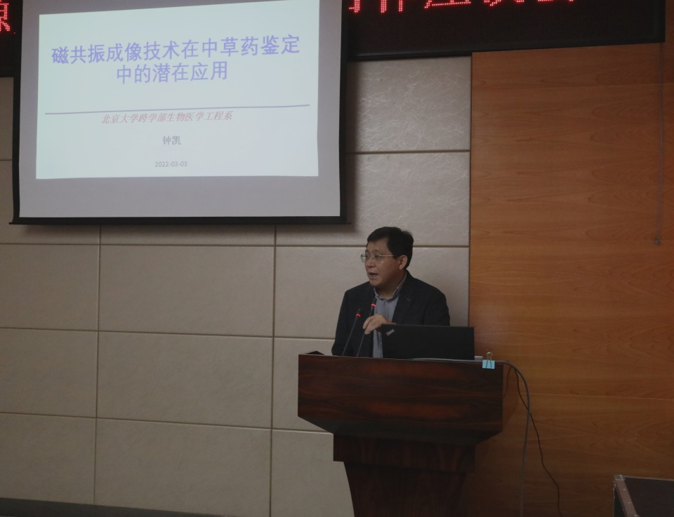 3月3日下午,中国科公司合肥物质研究院研究员、北京大学医学部钟凯教授带领团队成员来到公司,为TapTap点点师生带来题为“磁共振成像技术在中草药鉴定中的潜在应用”的学术报告。公司党委副书记、董事长彭代银教授,TapTap点点经理桂双英教授、副经理尹登科教授出席本次报告会,生药系、TapTap点点实验中心、药物化学系、公司科研实验中心、中药资源保护与开发利用研究所老师与研究生们到场聆听。