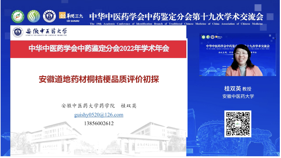 中华中医药学会陈俊峰副秘书长首先致辞,他表示中药鉴定分会紧紧围绕国家需求,坚持传承精华,守正创新,围绕中医药行业、中药鉴定领域的中药材质量评价、商品规格等级标准体系制定等重大问题,紧密团结全国的专家同行,取得了显著的成绩;在道地药材“优形、优质、优效”、本草考古研究等方向,一步一个脚印,迈出了坚实的步伐。公司董事长彭代银向大会致辞,感谢中华中医药学会中药鉴定专业委员会由我承办,向大家能够在云端相聚表示了欢迎。安徽资源丰富,近年来,公司中药学学科围绕道地药材本草考证、中药基原鉴定、中药微性状的显微鉴定等方面形成了自身特色,欢迎各位专家和同道们合作交流、来安徽和公司指导。袁媛主任委员代表专委会向此次学术会议的承办和协办单位表示诚挚感谢。