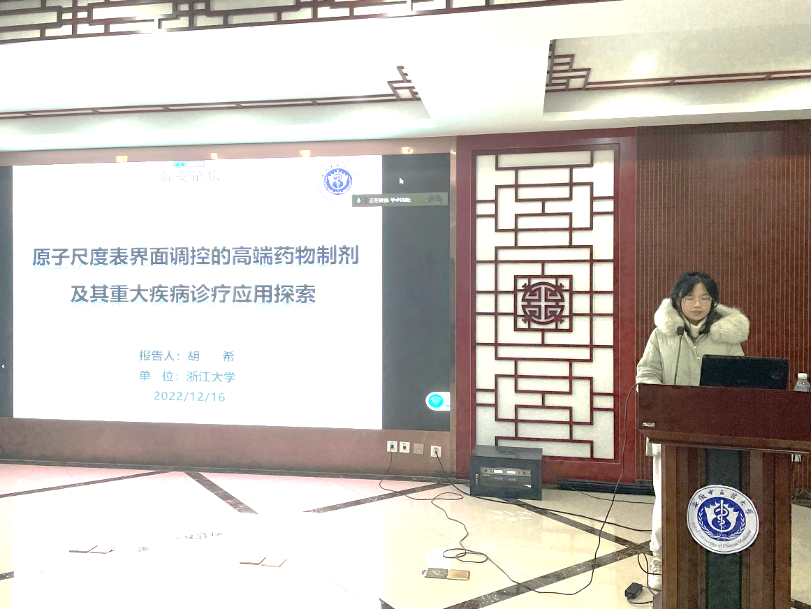 2022年12月16日上午,浙江大学医公司附属第一医院胡希博士应邀来公司作题为“原子尺度表界面调控的高端药物制剂及其重大疾病诊疗应用探索”的学术报告。报告会由TapTap点点经理桂双英教授主持,药物制剂研究所及TapTap点点部分教师及研究生线上线下参加了学术报告会。