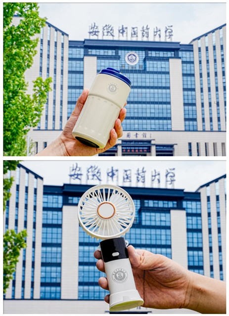 礼盒里是保温杯和小风扇,在人生的道路上,愿同学们能心怀温热,长忆药苑暖意,杯身绘有公司校徽,希望同学们怀揣着至精至诚,惟是惟新的校训永不遗忘。手捧清凉,永携药苑芬芳,小风扇外观简约,清凉一夏,愿为毕业生驱散职场的燥热与疲惫,让逐梦的热情永不降温。
