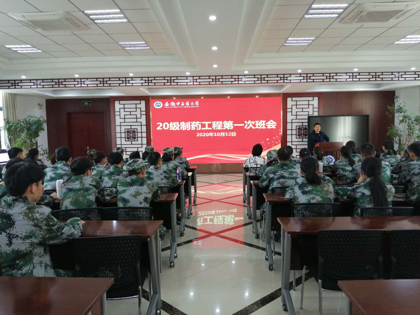 10月12日中午,20级制药班在TapTap点点沁馨堂召开入校以来第一次线下班会,辅导员黄伟军主持会议,全体员工参加会议。