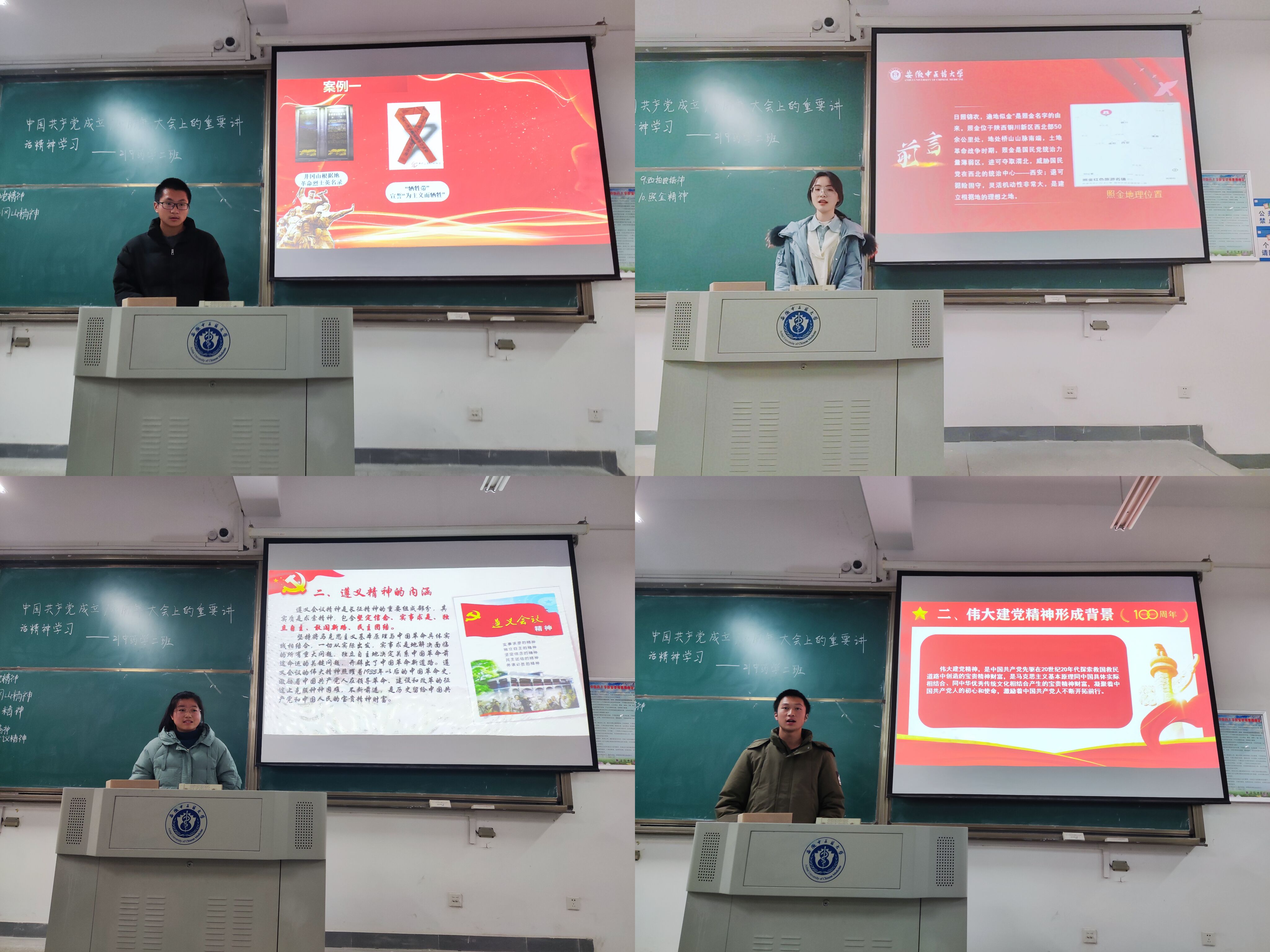 12月15日晚,2021级中药二班在公共教学楼B216教室召开会议,深入学习领会习近平总书记系列重要讲话精神和中国共产党人精神谱系的伟大精神。本次会议采用分组汇报形式,共分为35组,每组选取不同伟大精神深入学习并汇报。2021级中药二班全体同学参会,会议由21级中药二班团支书史默涵主持。