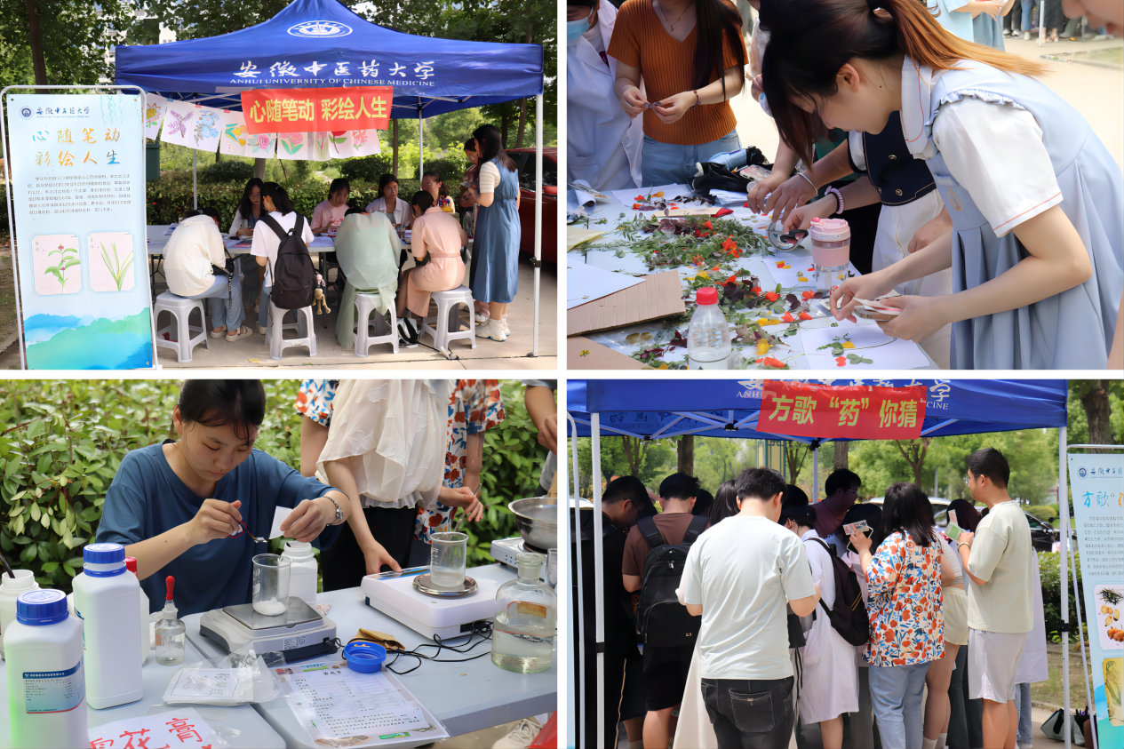 本次文化节设计了一系列趣味实践活动:“一纸药文”——中药资源中心讲解活动;仿古炮制,共品药香”——古典炮制工艺中的炒法和炙法展示“妙手生药——中药护肤品制作展示活动;“名医故事知多少”——古今名医故事问答;“草木拓染”“笔墨药香”“手工香囊制作”“标本缝制教学”等。