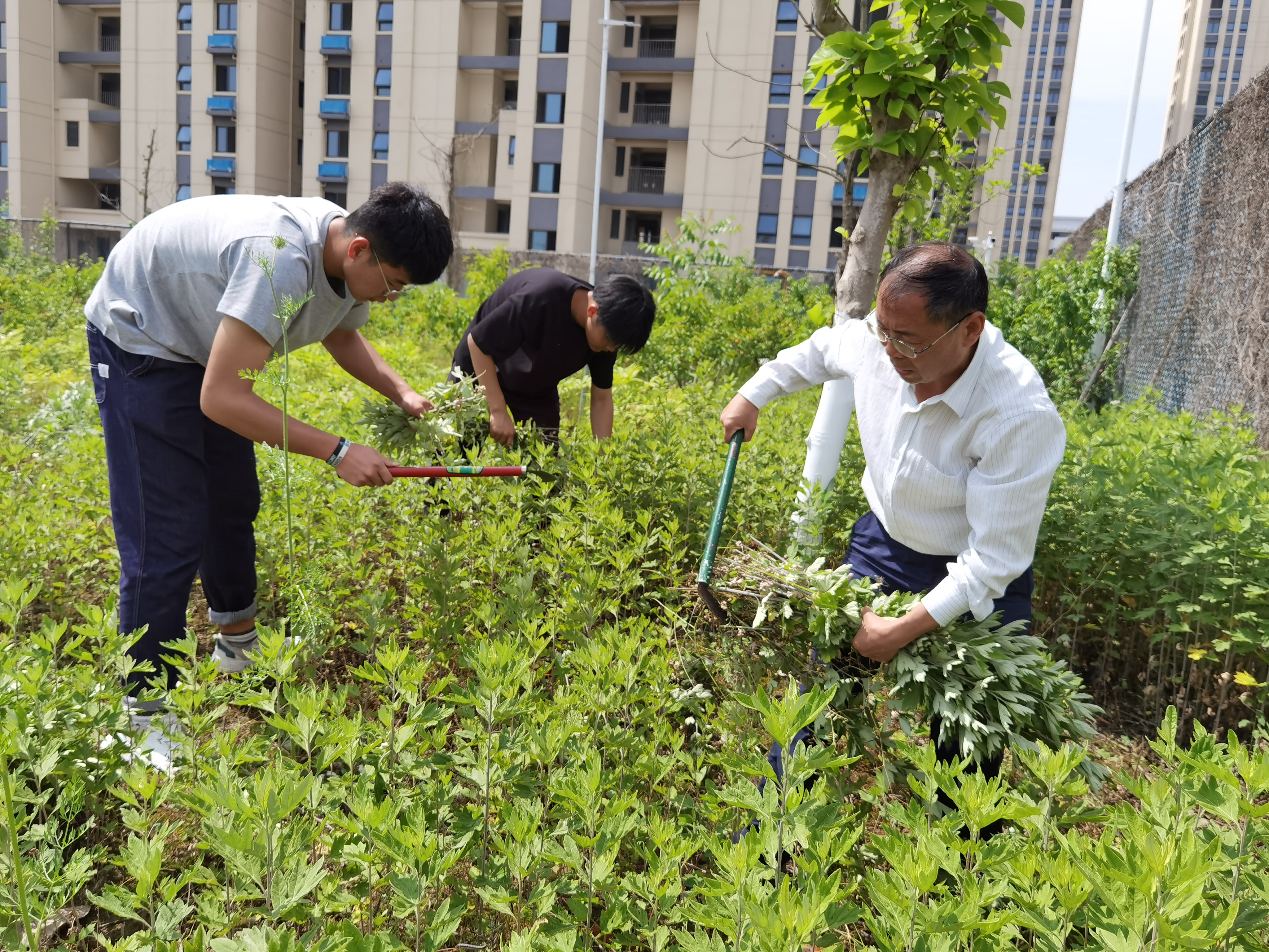 为进一步促进员工崇尚劳动、尊重劳动,创新劳动培育的路径和载体,提升专业理论联系实际的能力,端午之际,“沁馨药苑”员工社区在药用植物园组织开展劳动实践教育活动,师生共同采收艾草。