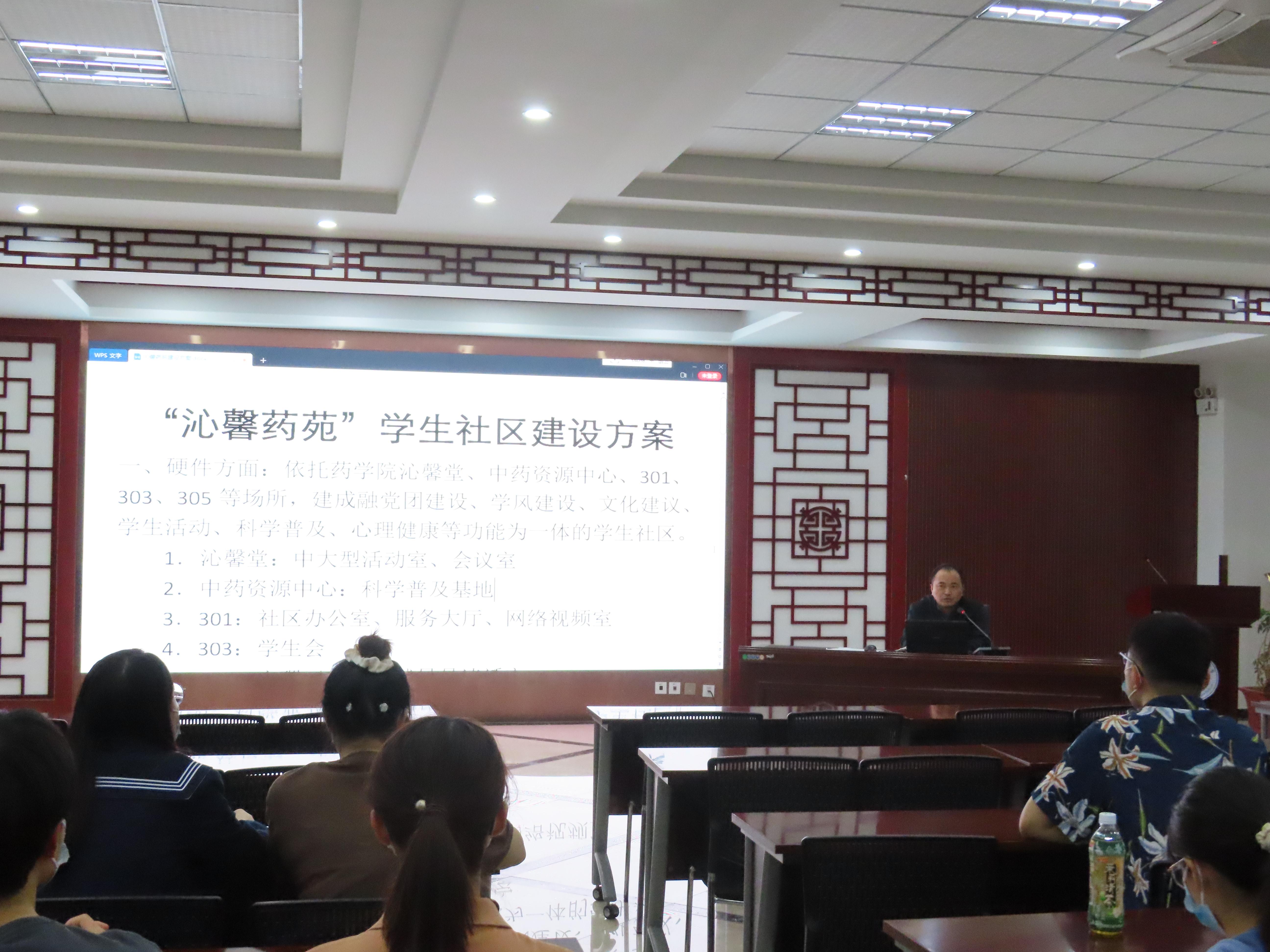 5月12日晚,公司召开“沁馨药苑”员工社区建设推进会,公司各班级组织委员、院员工会、分团委、党员先锋队、学风建设组、中药讲解团、心理工作站等员工骨干参会,会议由公司党委副书记徐先韬主持。