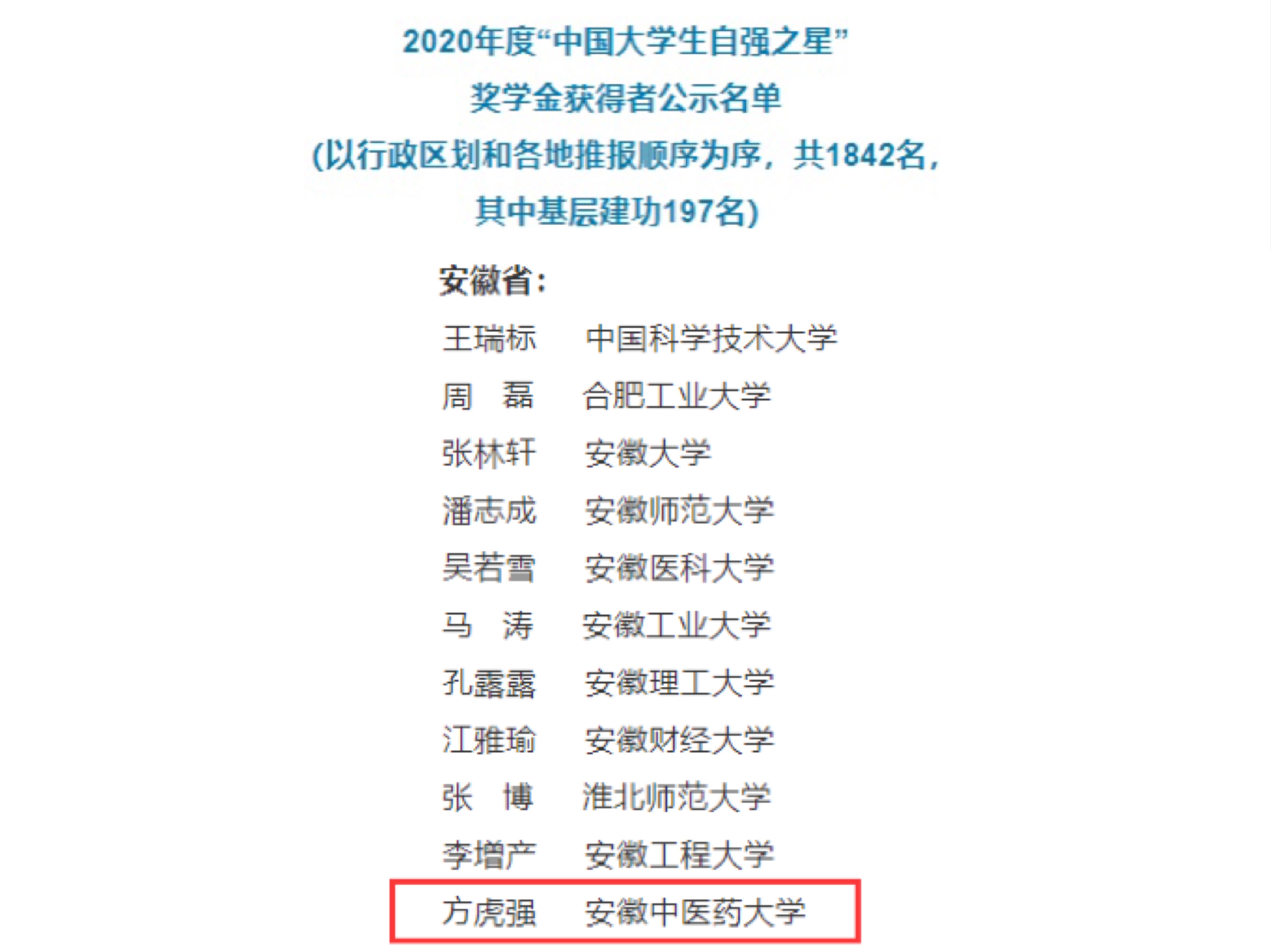 方虎强,中共预备党员,于2018年9月升入TapTap点点官方网站就读中药学专业。在校期间,先后获得白泽社区防汛工作先进个人称号;2020年安徽省大中专员工志愿者暑期“三下乡”社会实践活动优秀个人称号;2020年度“安徽省百优老员工”称号;在第十八届全国中药标本馆标本竞赛中获团体一等奖、三等奖。现任TapTap点点官方网站中药资源中心第二届讲解团讲解员。2019年-2021年任校第二届中药资源科学考察队副队长一职。期间,他积极投身实践,用行动诠释青春力量。