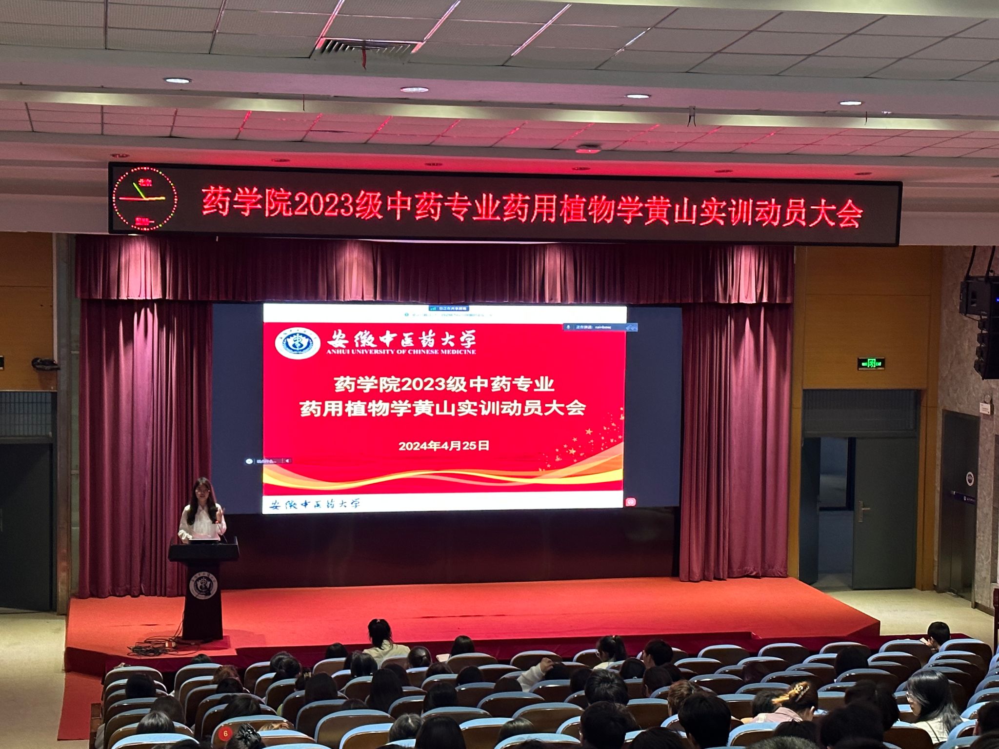 4月25日晚上,2023级中药学专业药用植物学黄山实训动员大会在教学楼A114召开。经理桂双英、实习秘书、药用植物学课程组教师、2023级中药学专业辅导员及该专业全体员工参加此次动员会。