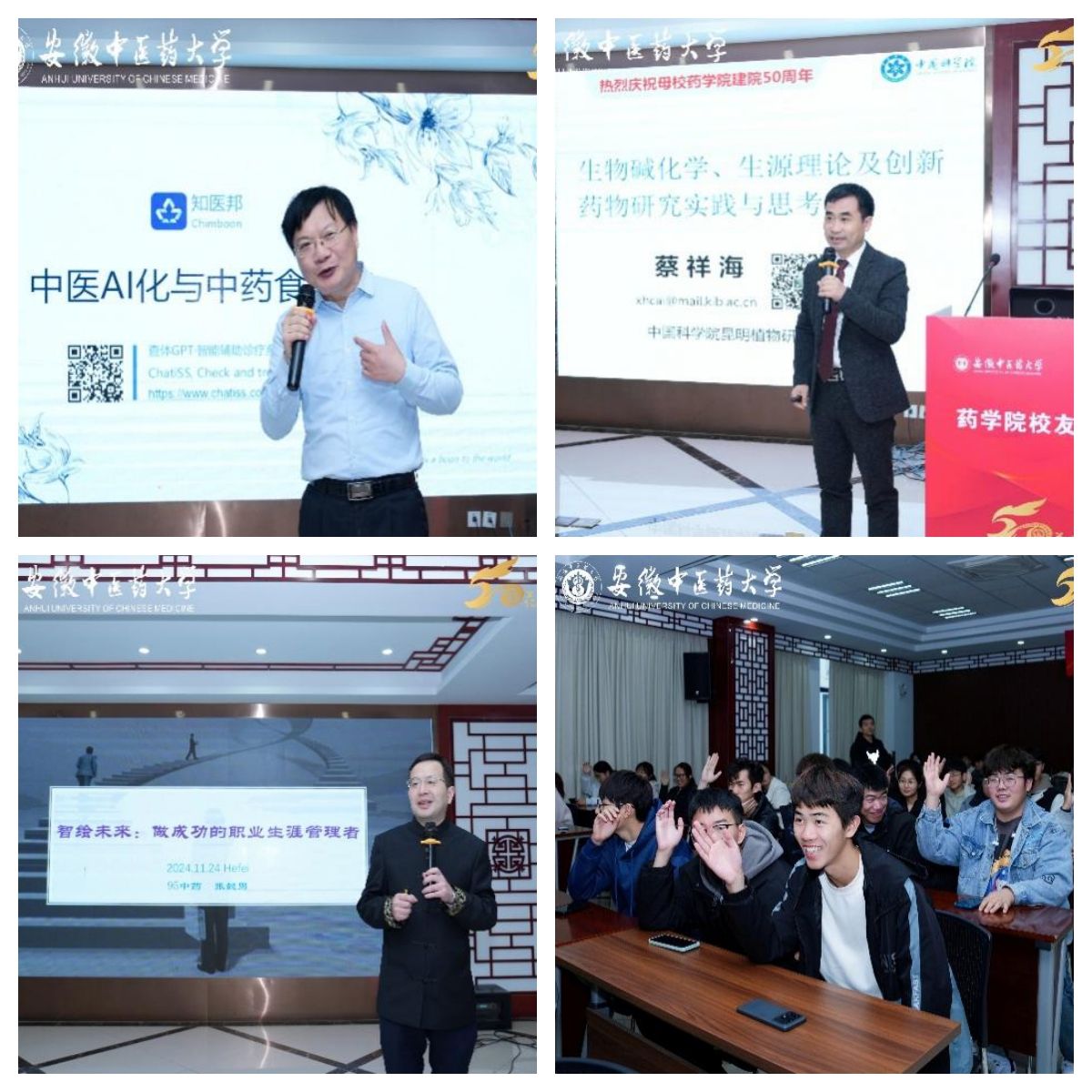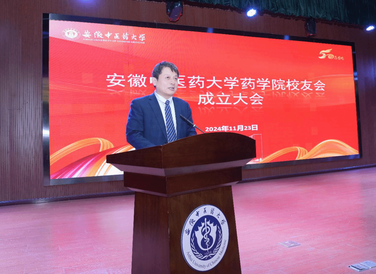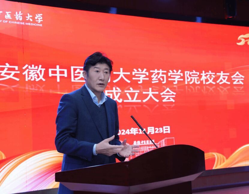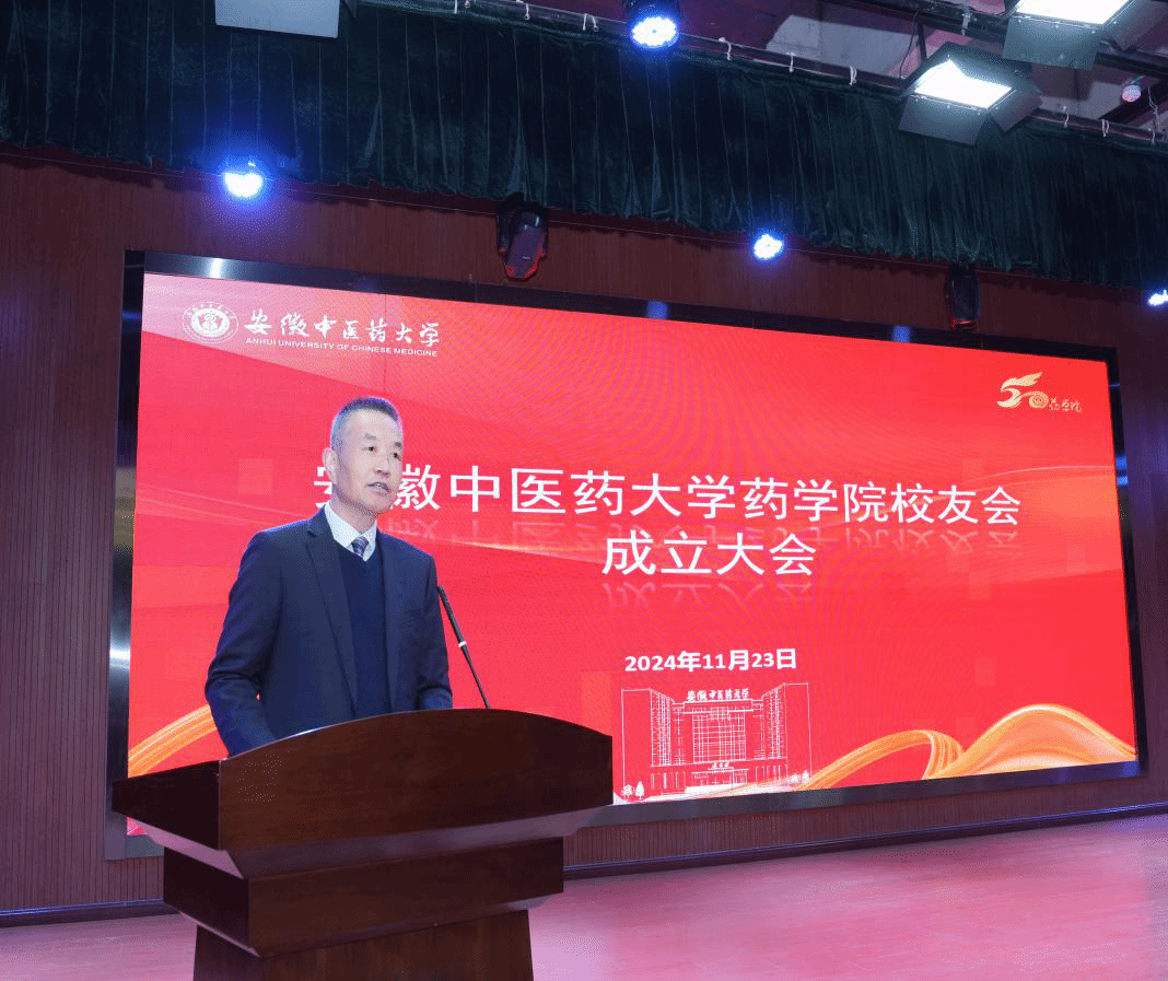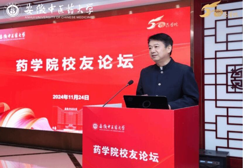 安徽山河药用辅料股份有限公司董事长尹正龙作为员工代表发言,他深情回忆了在母校的点点滴滴,表达了对母校深厚的感情和对中医药事业发展的殷切期望。