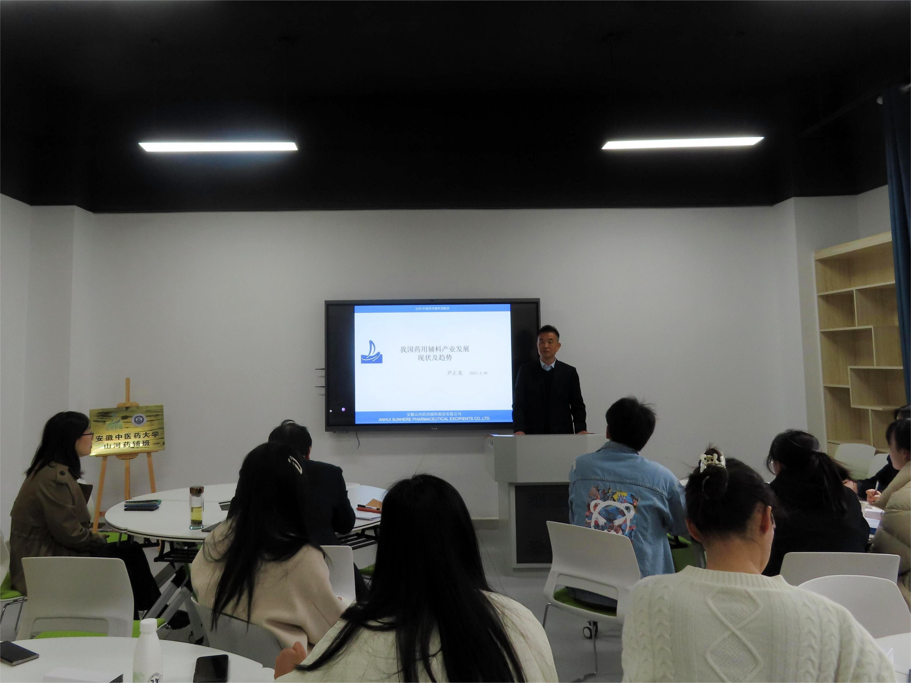 开班仪式上,尹正龙、桂双英、江慧为第二届山河药辅班五位优秀学员颁发了奖学金。随后,尹正龙为学员上第一课,题为《中国药用辅料发展现状及发展趋势从当前医药经济形势回顾、重大行业政策调整对医药行业影响、中国药用辅料产业发展现状、中国药用辅料产业机遇和挑战、产业未来发展方向、山河药辅发展历程和介绍、仿制药一致性评价辅料进展和成果、企业发展方向为在座学员进行详细解读,学员们受益匪浅。